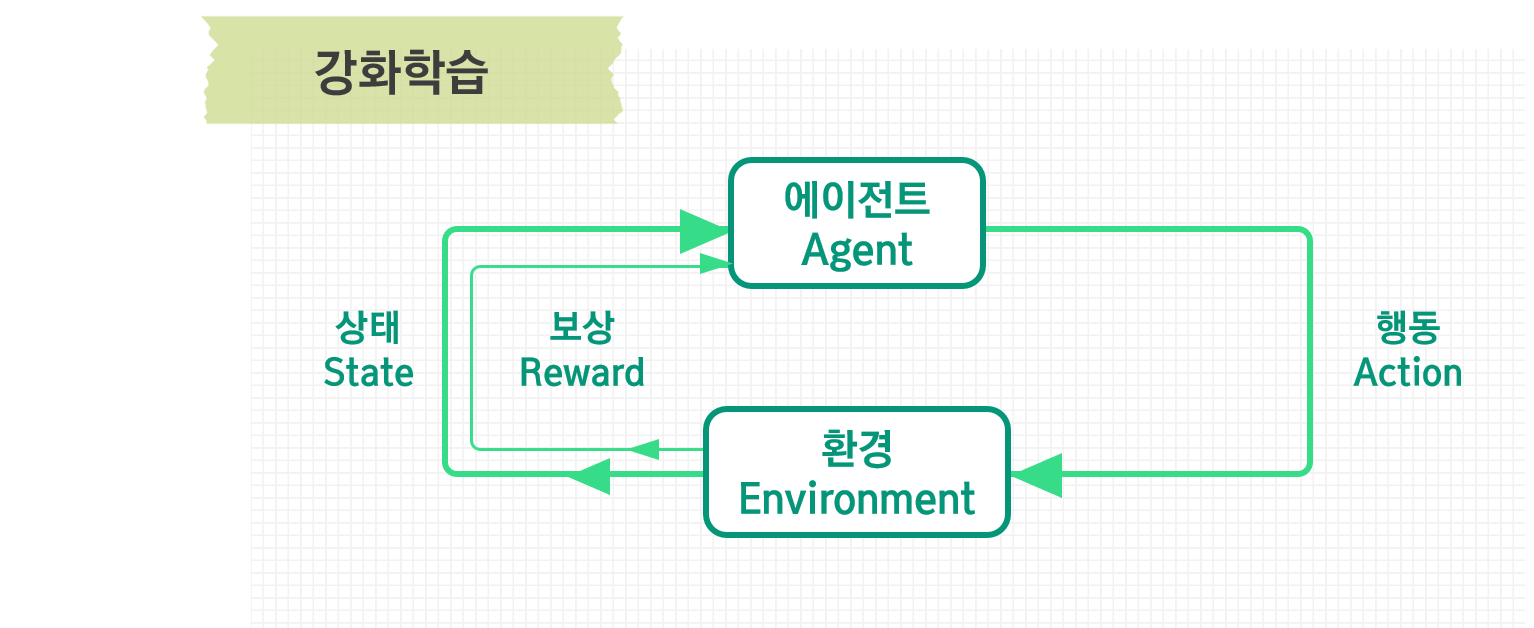 머신러닝은 다음 그림처럼 크게 지도기반 학습(Supervised Learning), 비지도기반 학습(Unsupervised Learning), 강화학습(Reinforcement Learning)으로 분류됩니다.