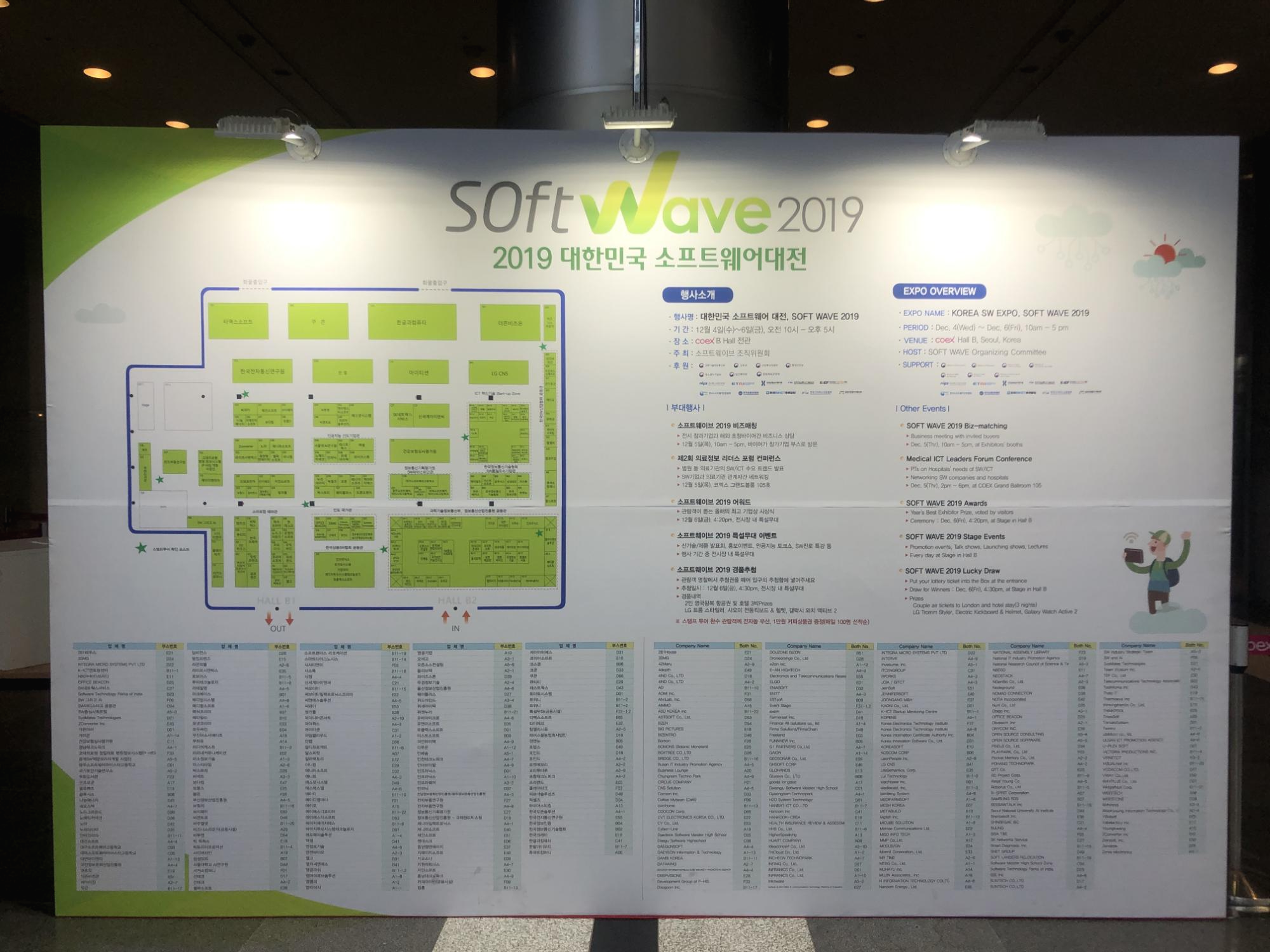 2019년 12월 4일 (수) ~ 12월 6일 (금) 3일간, 코엑스 B홀 및 그랜드볼룸 전관에서 2019 대한민국 소프트웨어 대전(Soft wave 2019)가 개최되었습니다.