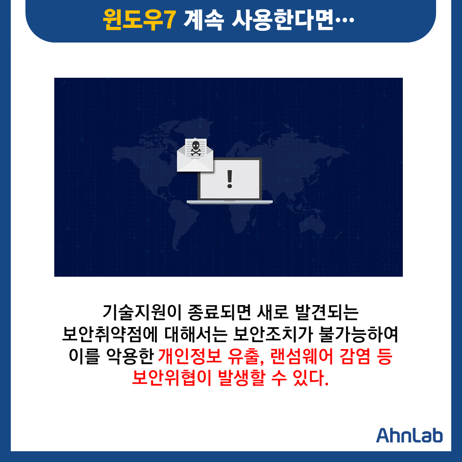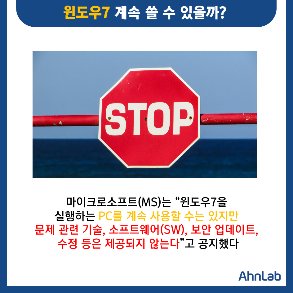 윈도우(Windows) 7의 기술 지원이 종료된다.