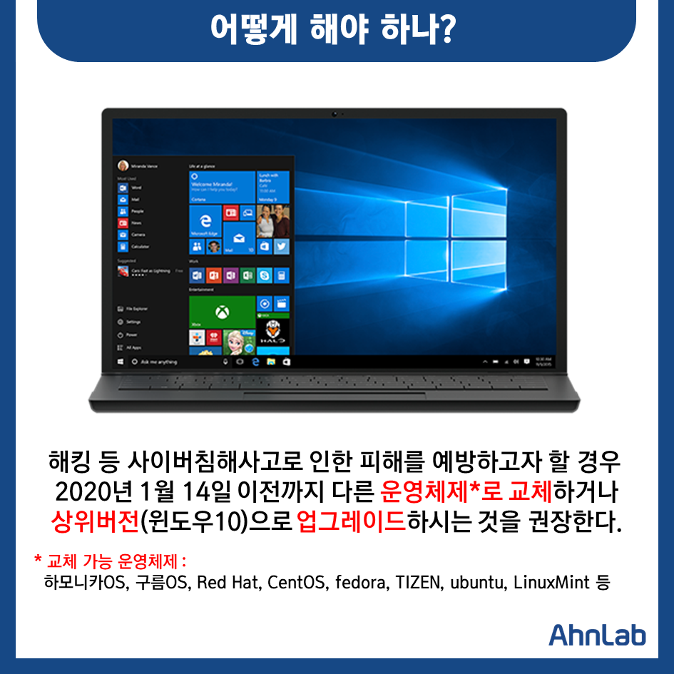 2020년 1월 14일 이전까지 다른 운영체제*로 교체하거나