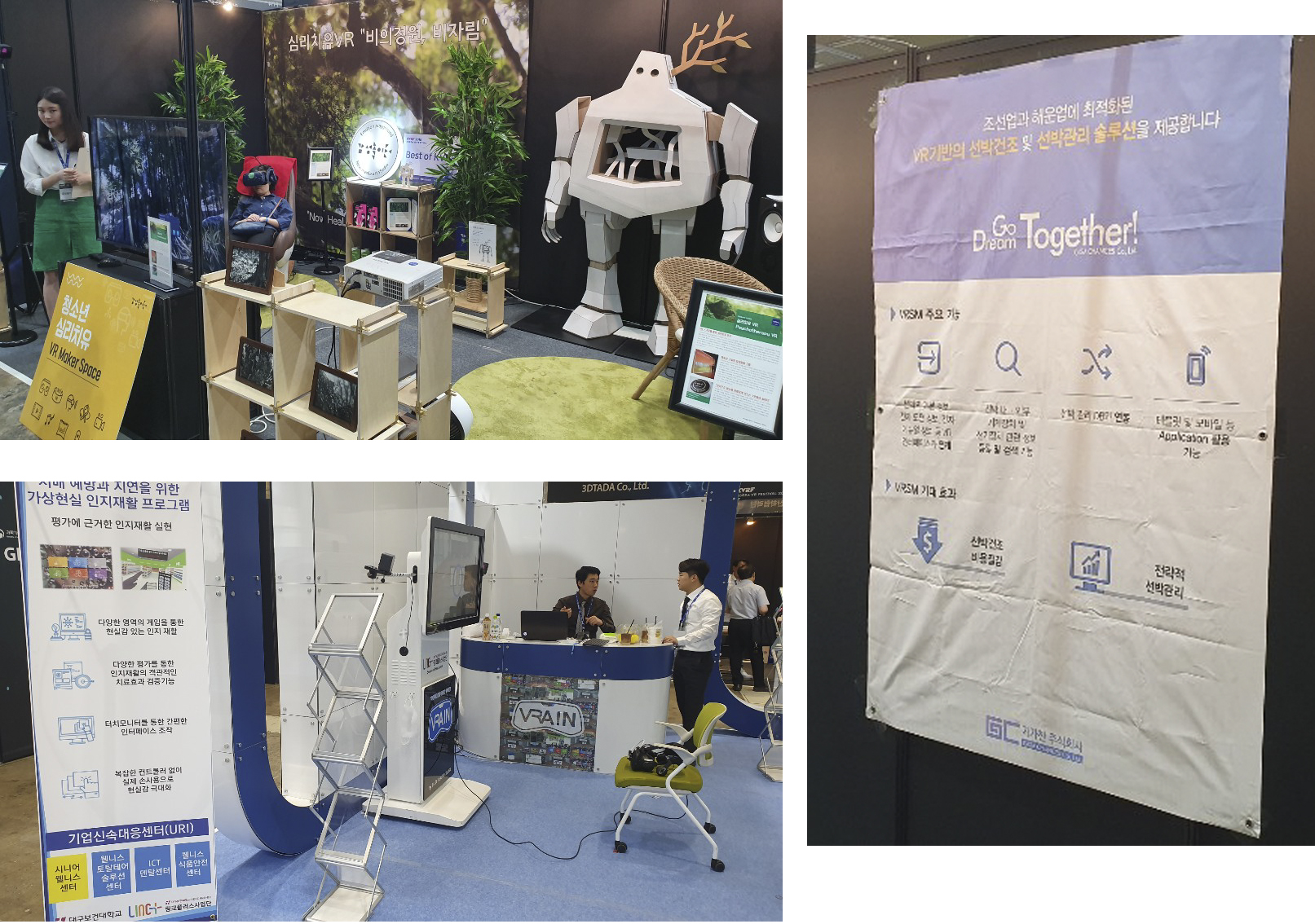 VR을 새롭게 활용한 기업도 만날 수 있었습니다. 심리치료와 재활치료 등 의학분야를 위한 VR 콘텐츠가 전시되었고, 해운업 측면에서 VR기반 선박제조 및 관리 솔루션을 제공하는 기업도 볼 수 있었습니다.