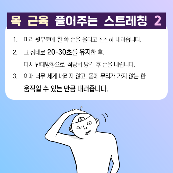 1. 머리 윗부분에 한 쪽 손을 올리고 천천히 내려줍니다.