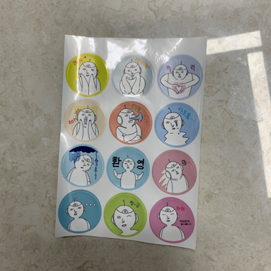 갑의 12가지 모습이 있는 알록달록한 원형 스티커입니다. 휴대폰이나 노트북에 붙여도 귀여울 것 같죠?